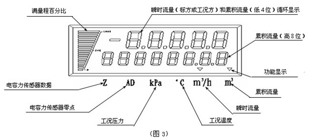 3、流量計(jì)運(yùn)行時(shí)液晶屏示屏顯示內(nèi)容